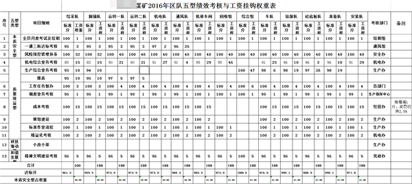 2016年1月份開始,精益化管理正式調(diào)整為一級考核指標(biāo),工資權(quán)重5%,不同單位按照專業(yè)不同下設(shè)二級指標(biāo),考慮到考核平衡性問題,不同單位根據(jù)精益化管理提升空間和考核指標(biāo)數(shù)量不同,二級指標(biāo)數(shù)量、考核指標(biāo)、二級指標(biāo)權(quán)重比例、五型績效加扣分標(biāo)準(zhǔn)有所區(qū)分。
