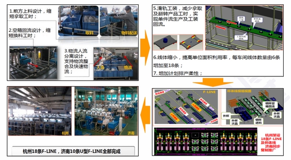 建立23人精益線:站立作業、工位料架、手傳式作業、局部皮帶傳送、螺絲刀等進行吊裝;