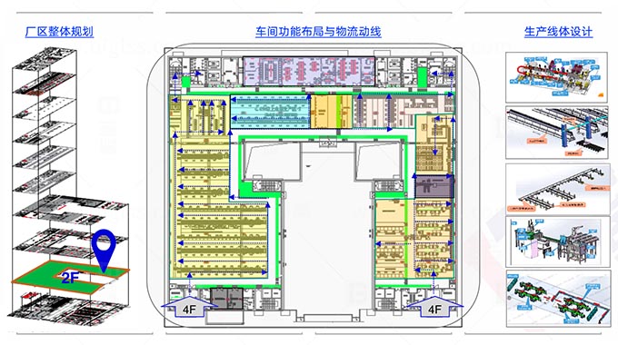 規(guī)劃和設(shè)計(jì)有效地利用設(shè)備、空間、能源和人力資源;簡(jiǎn)化生產(chǎn)加工過程并降低管理難度;提高工廠可視化效果,提升工廠整體形象的同時(shí),能夠按客戶需求節(jié)拍,強(qiáng)制平衡流動(dòng)的生產(chǎn)工藝布局。