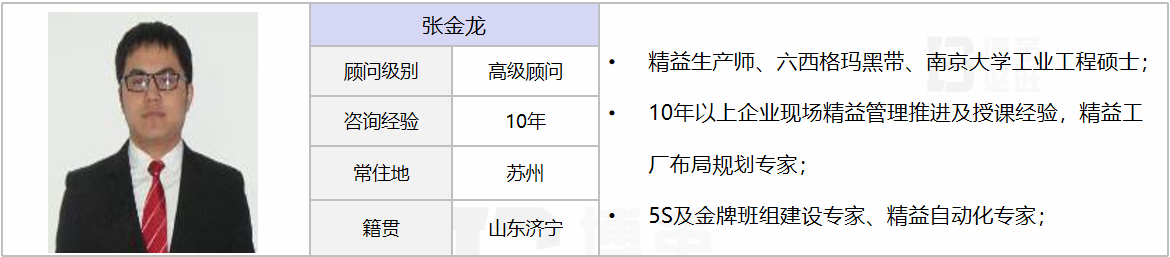 熟悉行業(yè):家電裝配、工程機(jī)械、機(jī)械加工、電子電器、裝備制造 擅長(zhǎng)業(yè)務(wù):擅長(zhǎng)精益工廠布局規(guī)劃、5S及金牌班組建設(shè)、信息化可視化管理,推動(dòng)精益項(xiàng)目實(shí)施快速改善,短期內(nèi)改善生產(chǎn)現(xiàn)場(chǎng),優(yōu)化工藝流程及工藝布局\推動(dòng)全員改善。有豐富的精益項(xiàng)目實(shí)戰(zhàn)推進(jìn)經(jīng)驗(yàn)、推動(dòng)精益項(xiàng)目在企業(yè)整體落地、現(xiàn)場(chǎng)標(biāo)準(zhǔn)化改善、生產(chǎn)效率提升、布局優(yōu)化、培訓(xùn)道場(chǎng)策劃及實(shí)施等、負(fù)責(zé)30+個(gè)工廠精益項(xiàng)目的推進(jìn)與運(yùn)營(yíng),具有豐富的精益咨詢(xún)經(jīng)驗(yàn)。