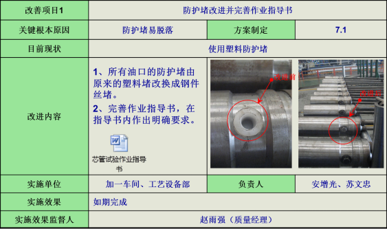 7)芯管試驗防護,針對防護堵易脫落問題,改進防護堵并完善作業指導書