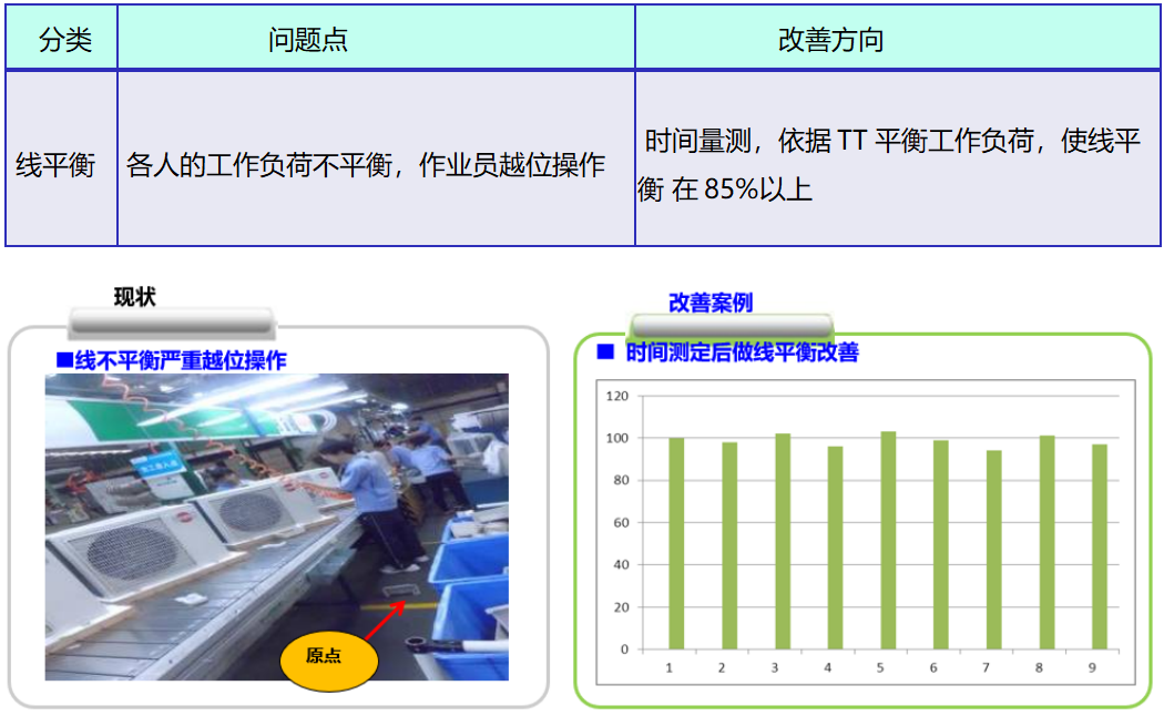 • 內外機生產VSM流程診斷→主要設備SMED診斷→設備停機診斷→主要流程工時診斷→工序庫存診斷→工序制程數據診斷