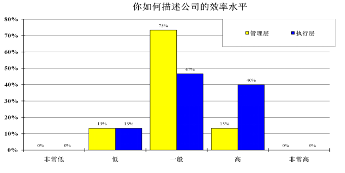 大部分的執行層認為公司的管理水平一般,有一半的管理層認為公司的管理水平一般。