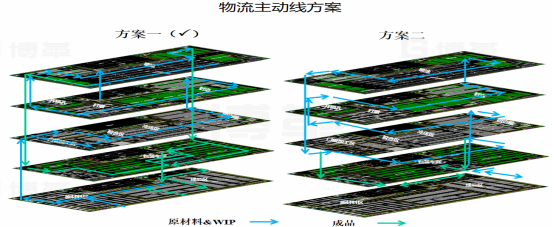 主要對目標廠房的樓層定位與單個樓層的功能區定位進行設計,在這個階段要求所有功能區域一個都不能少,并且要理順廠房內物流的方式、容器、容量,配送頻次或者發料頻次,周轉次數等。