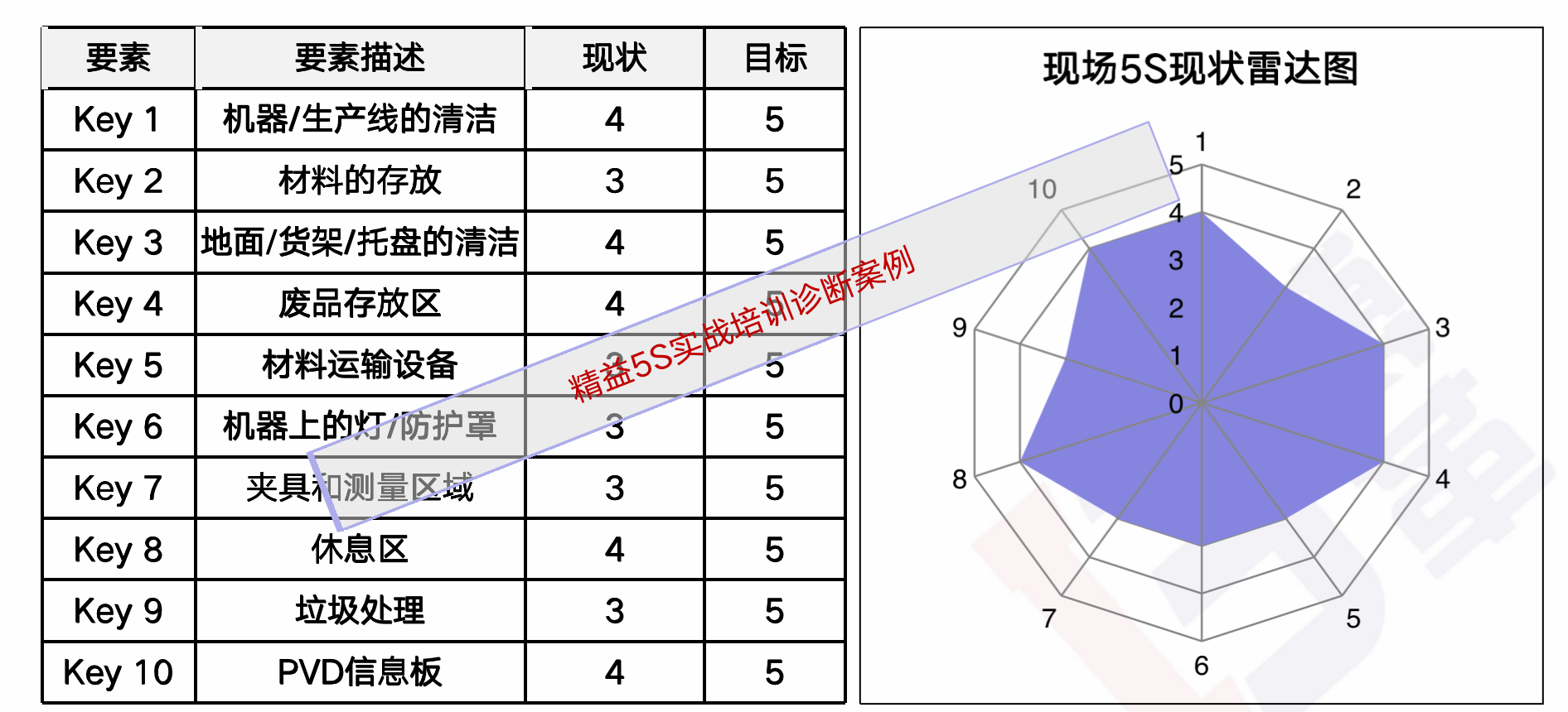 培訓(xùn)顧問(wèn)在培訓(xùn)前,對(duì)現(xiàn)場(chǎng)5S問(wèn)題點(diǎn)進(jìn)行診斷取景,使培訓(xùn)講解時(shí)更具有針對(duì)性,以解決現(xiàn)場(chǎng)的突出問(wèn)題。