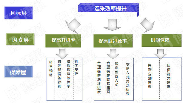 以OEE指標為引導,制定了關鍵路徑法,以提高開機率和性能開動率為兩條主線,提高設備綜合利用效率,從而提高綜采產能。